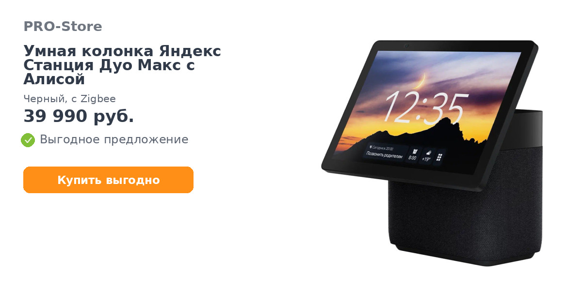 Яндекс Станция Дуо Макс с Алисой — новая флагманская умная колонка с экраном. Большой поворотный Full HD touch-экран с камерой, чтобы смотреть фильмы, общаться с близкими по видеосвязи, видеть ответы Алисы и управлять умным домом касаниями. Мощные динамики и сабвуфер — для чистого и сбалансированного звучания любимой музыки. Контурная анимированная LED-подсветка. Встроенный хаб управления Zigbee. Продуманный до деталей дизайн, чтобы вы получали удовольствие каждый раз, когда взаимодействуете с колонкой или просто на неё смотрите.Большой поворотный Full HD touch-экран