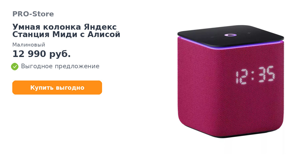 Умная колонка Яндекс Станция Миди с Алисой, Малиновый