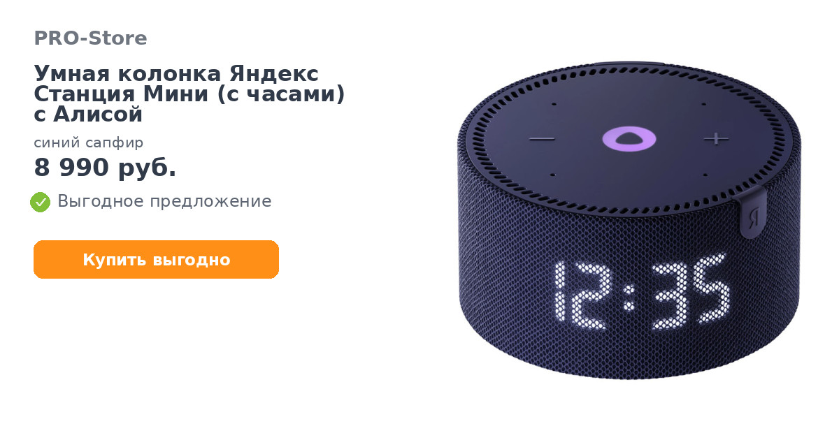 Умная колонка Яндекс Станция Мини (с часами) с Алисой, синий сапфир