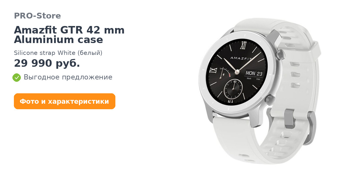 С Умные часы Amazfit GTR 42 mm Aluminium case,Silicone strap White (белый) покупают
