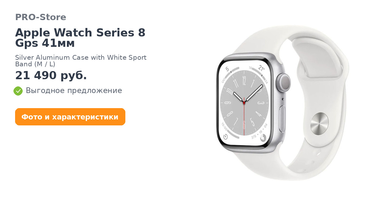 Умные часы Apple Watch Series 8 Gps 41мм Silver Aluminum Case with White Sport Band (M/L)