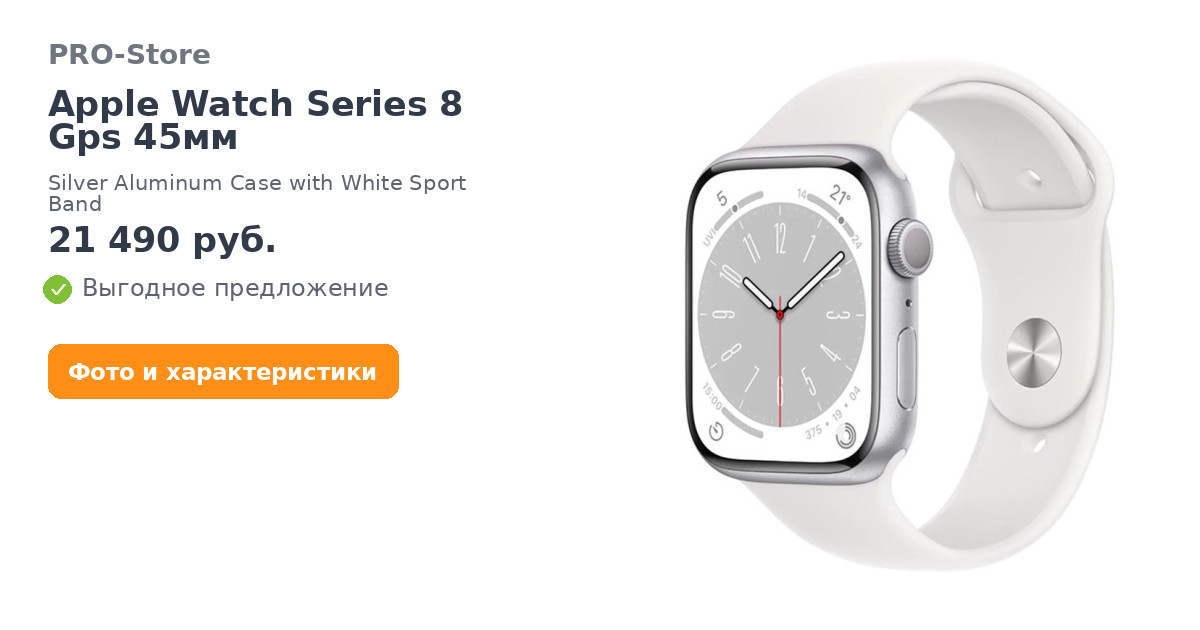 Умные часы Apple Watch Series 8 Gps 45мм Silver Aluminum Case with White Sport Band