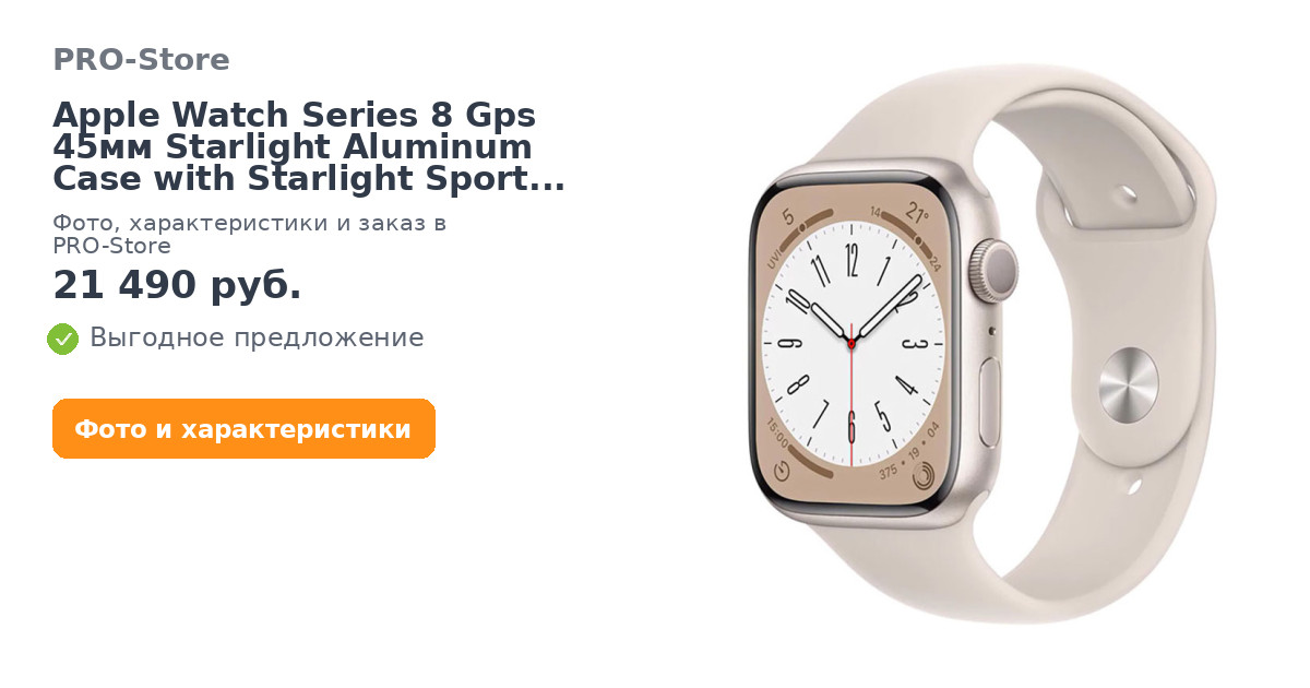 Умные часы Apple Watch Series 8 Gps 45мм Starlight Aluminum Case with Starlight Sport Band