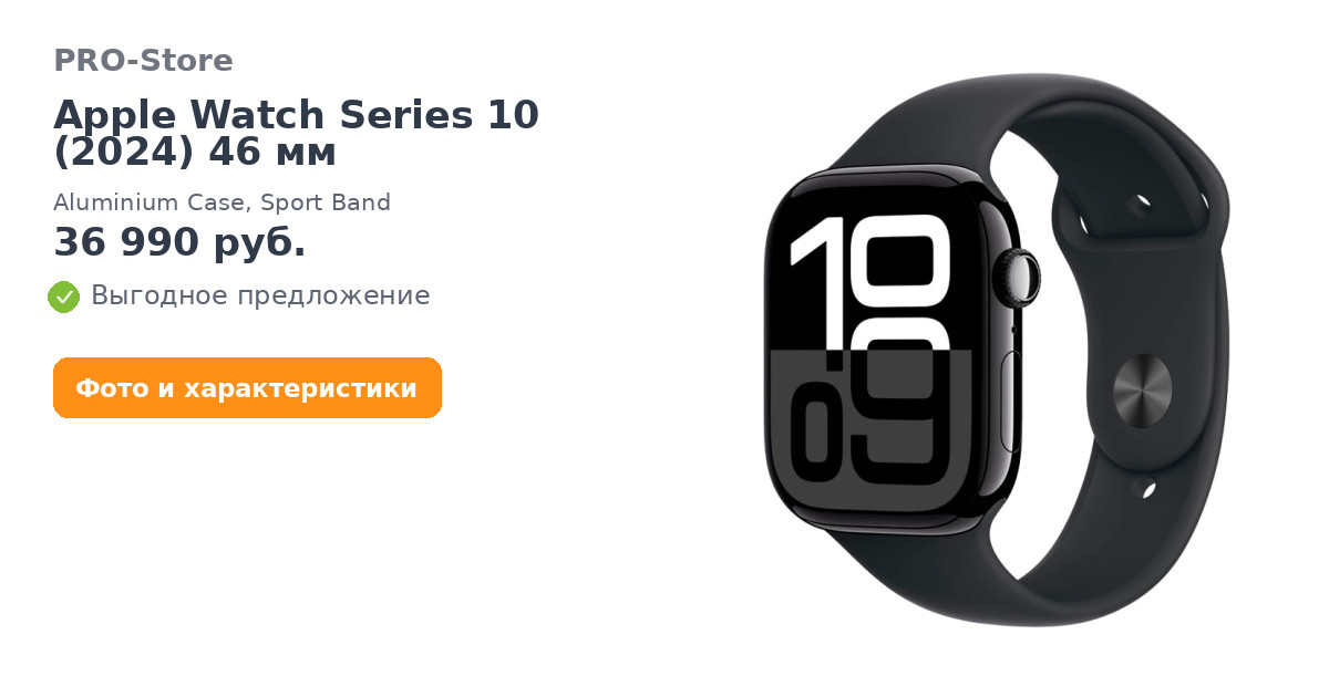 Умные часы Apple Watch Series 10 (2024) 46 мм, Aluminium Case, Sport Band, Black (MWWQ3) M/L