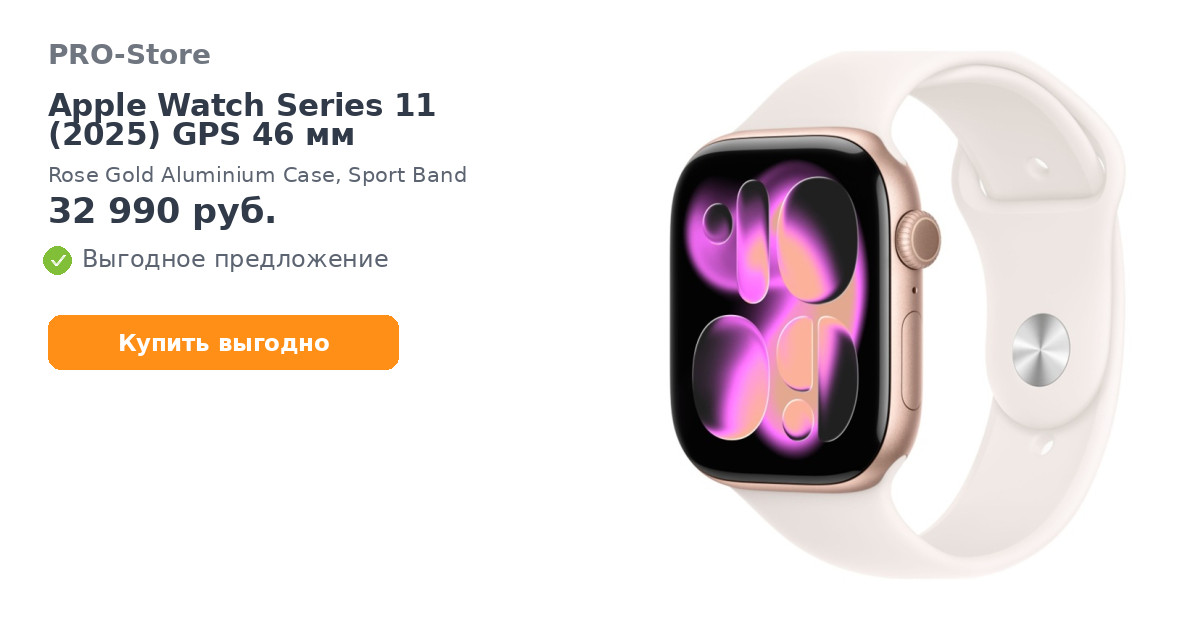 Умные часы Apple Watch Series 11 (2025) GPS 46 мм, Rose Gold Aluminium Case, Sport Band, Starlight M/L