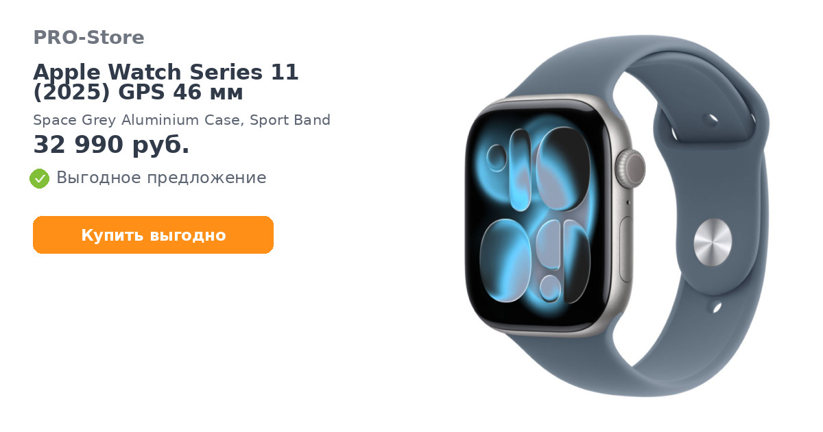 Умные часы Apple Watch Series 11 (2025) GPS 46 мм, Space Grey Aluminium Case, Sport Band, Anchor Blue M/L