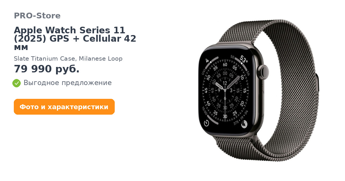 Умные часы Apple Watch Series 11 (2025) GPS + Cellular 42 мм, Slate Titanium Case, Milanese Loop, Slate