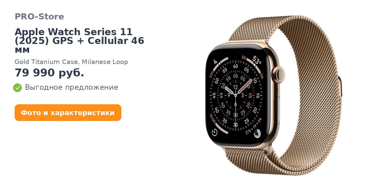 Умные часы Apple Watch Series 11 (2025) GPS + Cellular 46 мм, Gold Titanium Case, Milanese Loop, Gold