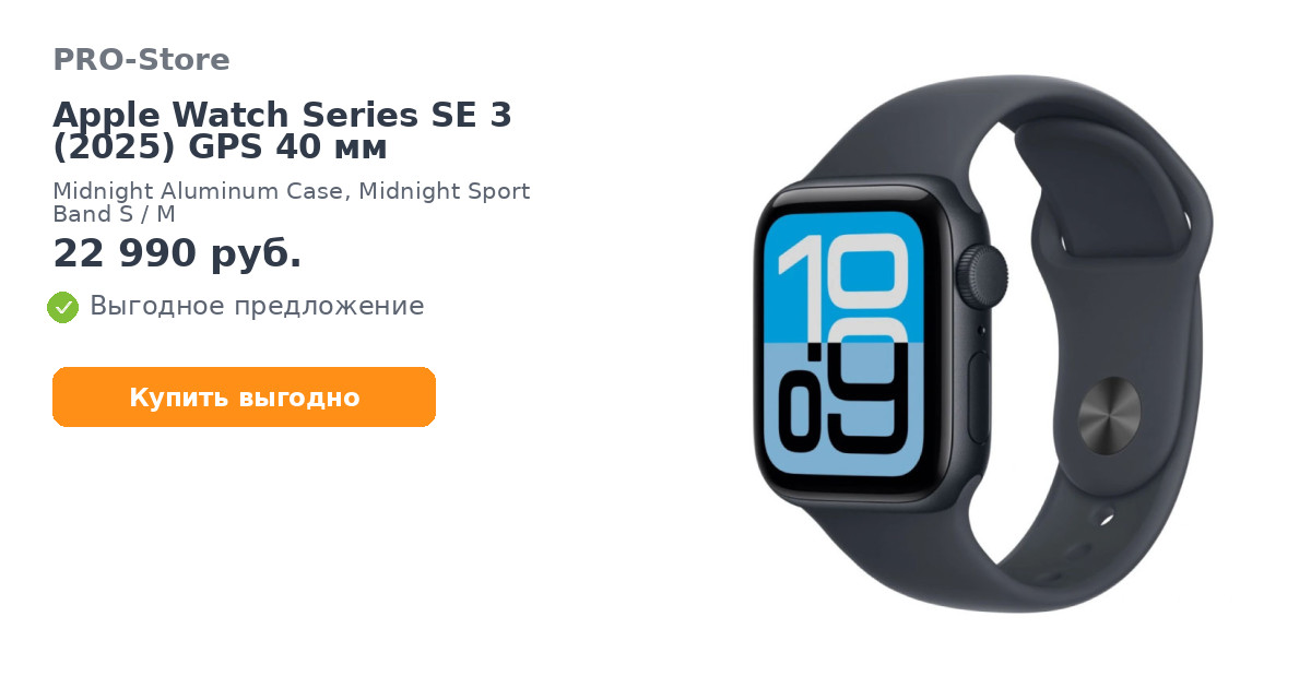С Умные часы Apple Watch Series SE 3 (2025) GPS 40 мм, Midnight Aluminum Case, Midnight Sport Band S/M покупают