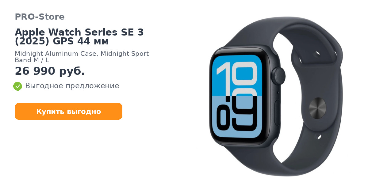 Умные часы Apple Watch Series SE 3 (2025) GPS 44 мм, Midnight Aluminum Case, Midnight Sport Band M/L