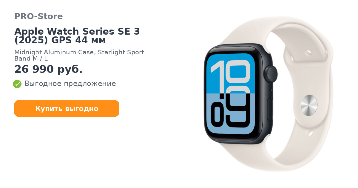 Apple Watch SE 3: Всё, что нужно. И даже больше.Новые Apple Watch SE — это самый умный выбор в линейке Apple. В этом году они получили невероятные обновления, которые раньше были доступны только во флагманских моделях. C мощным чипом S10, постоянно включённым дисплеем и продвинутыми датчиками здоровья, новые SE предлагают феноменальную производительность и функциональность по доступной цене.
