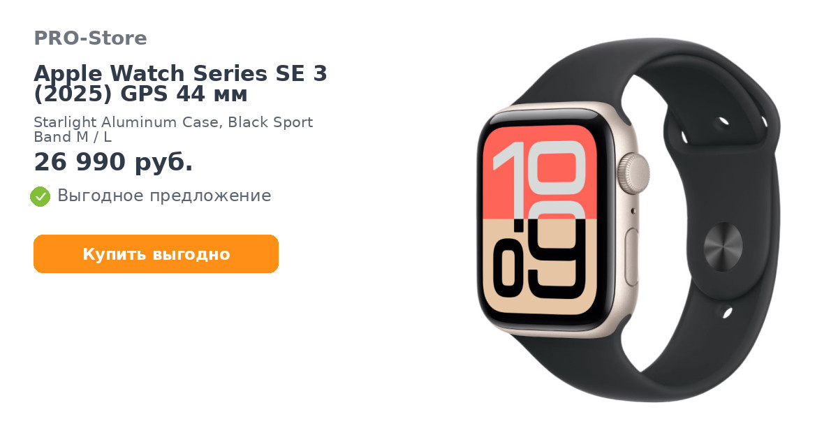 С Умные часы Apple Watch Series SE 3 (2025) GPS 44 мм, Starlight Aluminum Case, Black Sport Band M/L покупают
